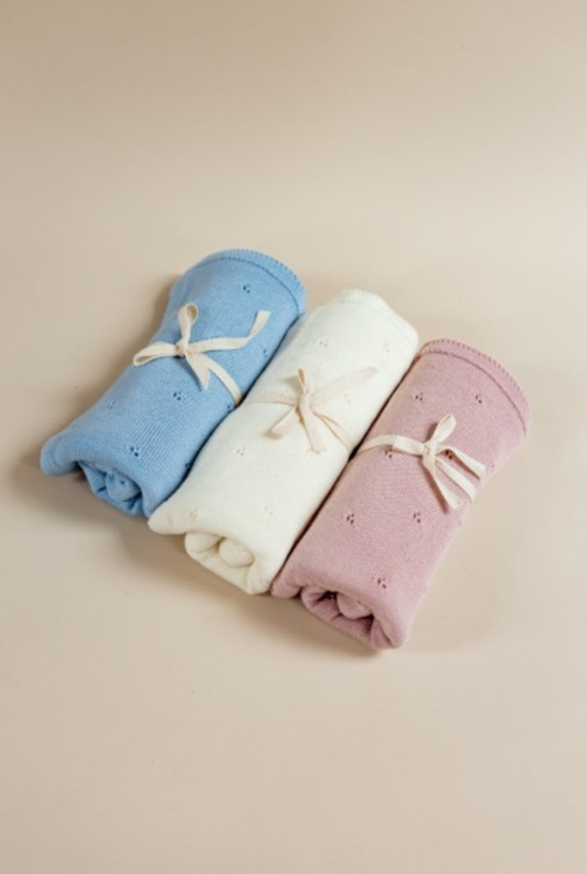 Pregiata Copertina in lana merino 100% 4 colori disponibili: Tortora, Rosa, Panna e Azzurro.