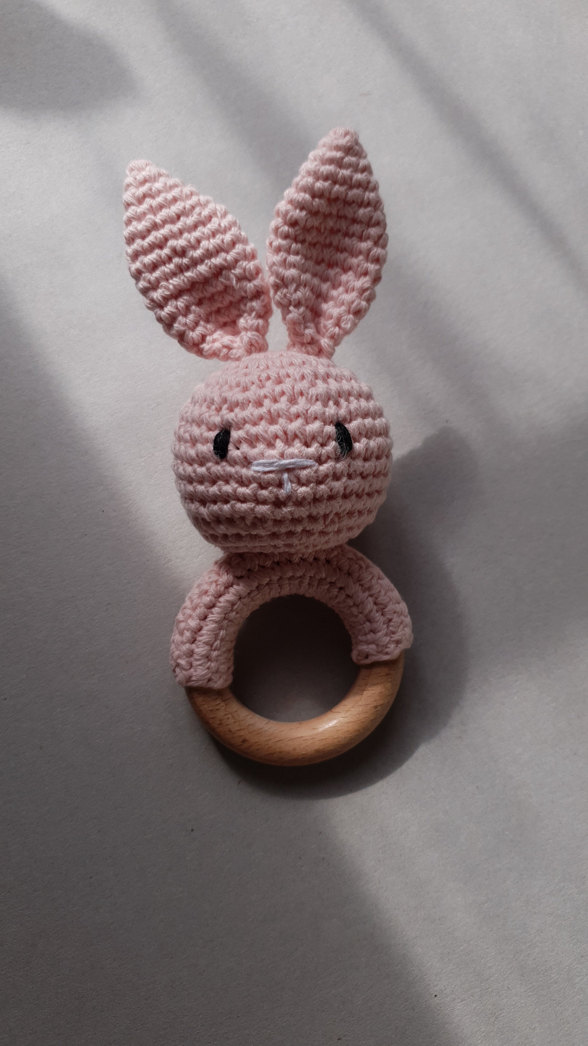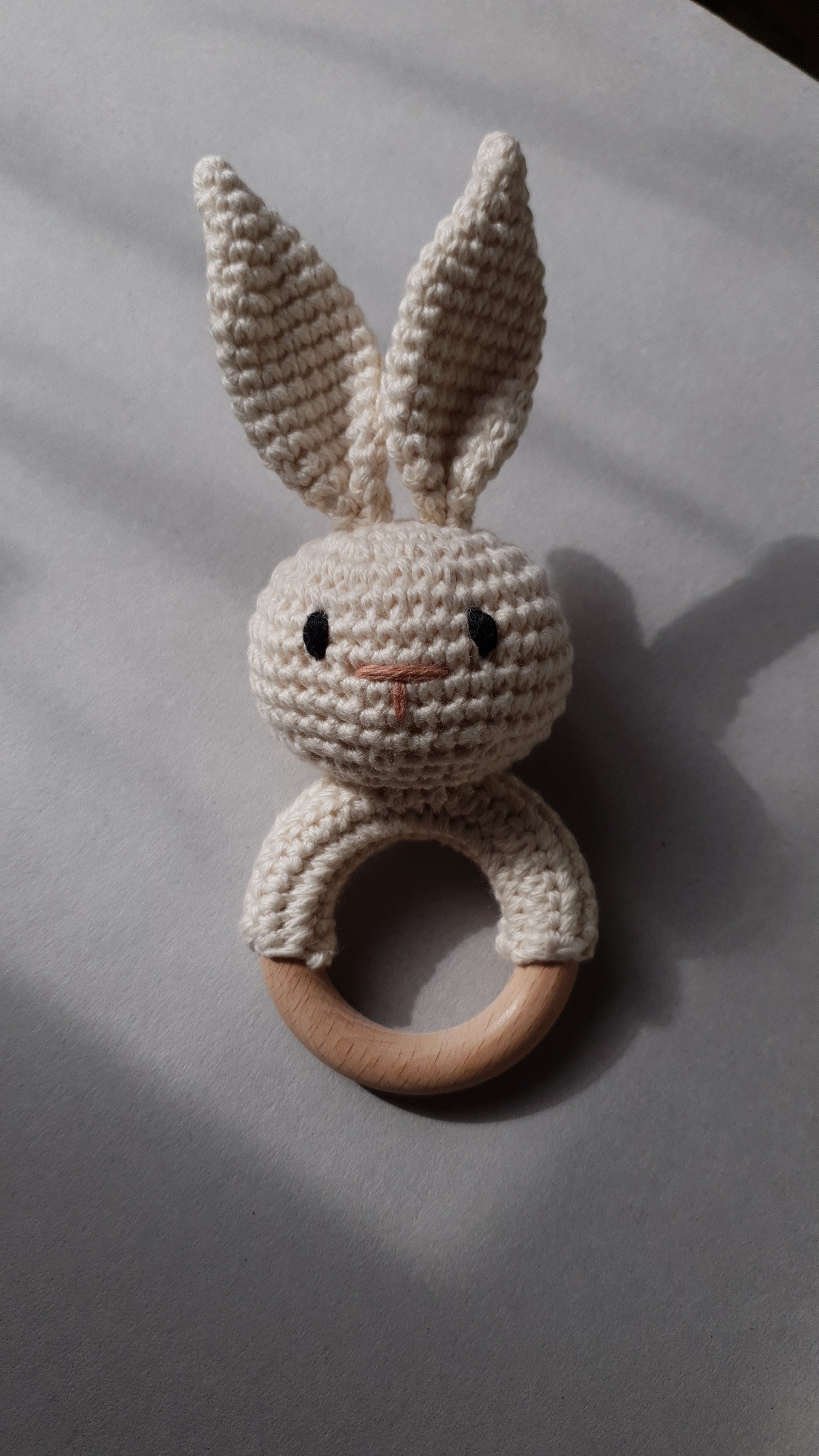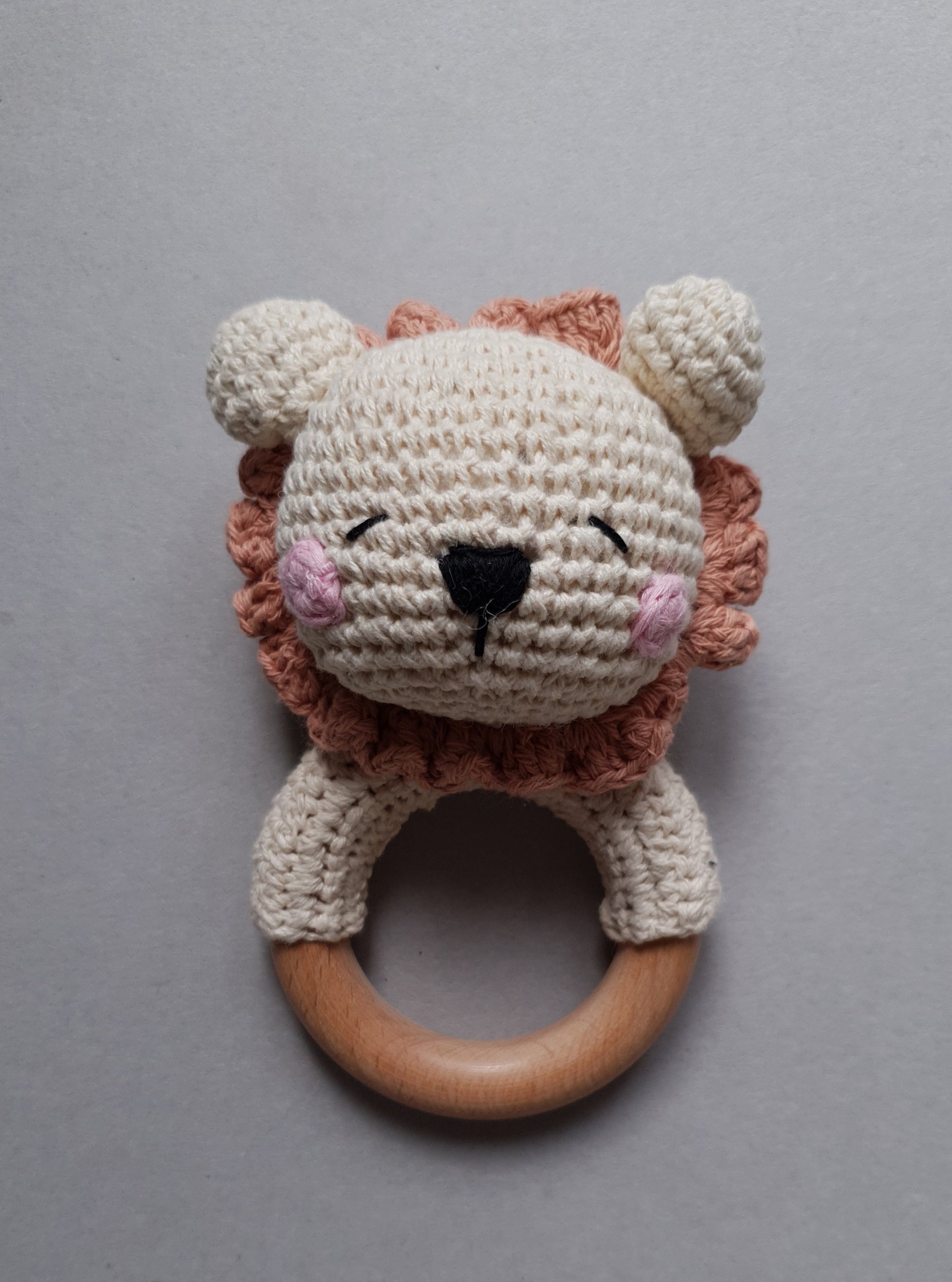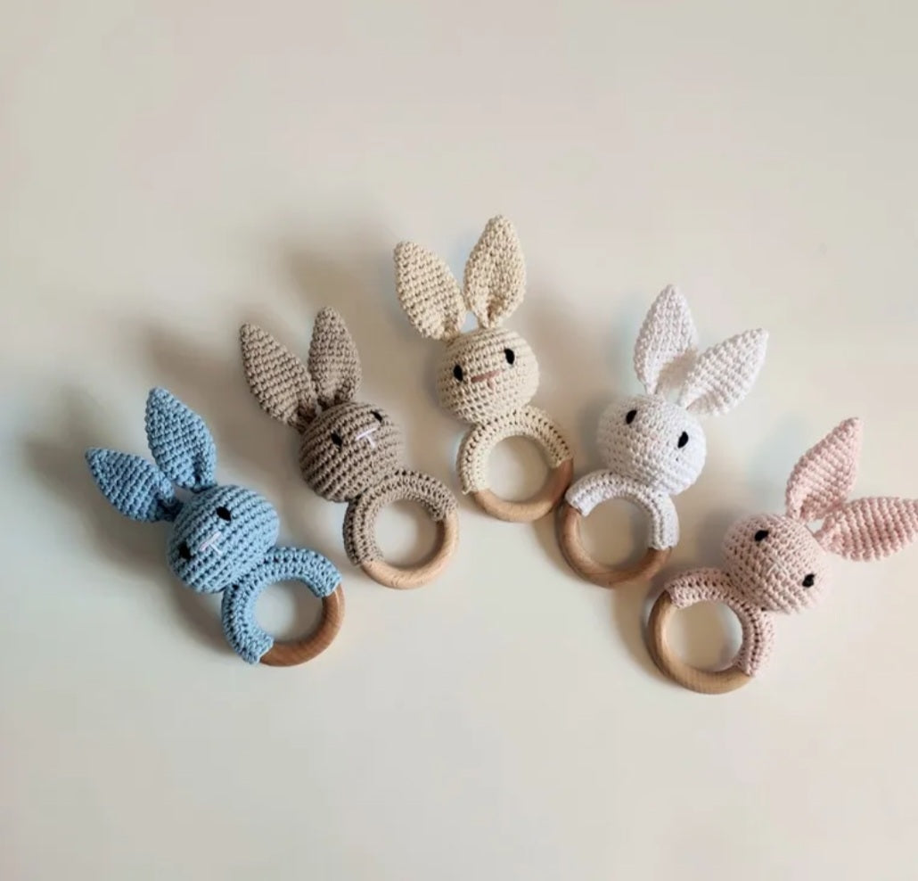 I nostri Sonagli per neonato sono realizzati interamente a mano con la tecnica dell'uncinetto amigurumi, utilizzando 100% cotone e anelli in legno di faggio.