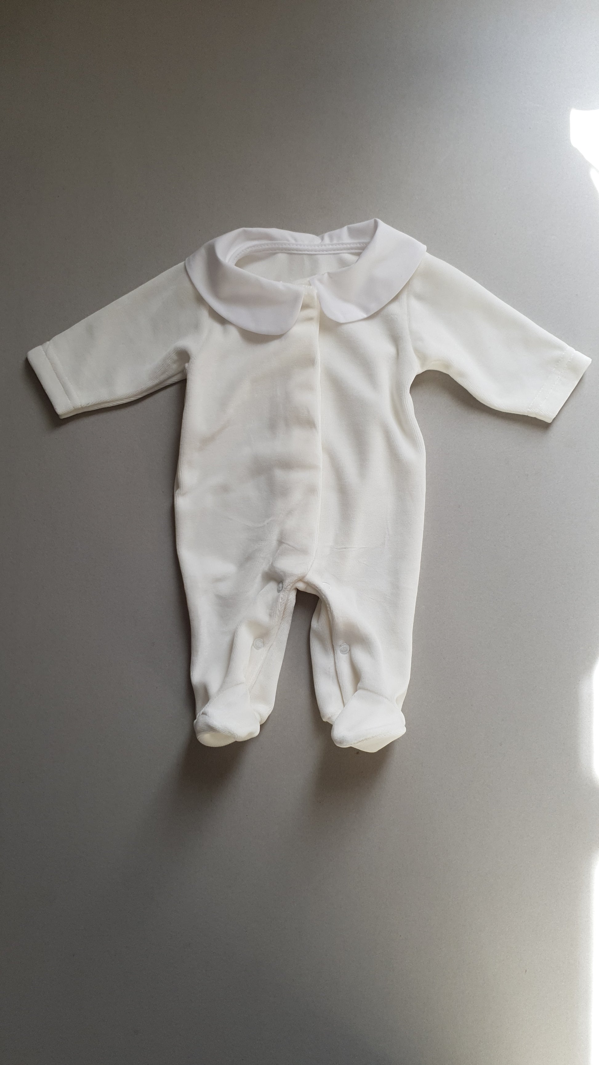 Tutina in morbida ciniglia con colletto semplice.